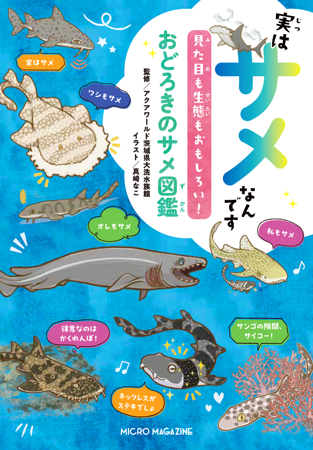 一般的にサメといえば鋭い歯に凶暴なイメージです。しかし、世界には「えっ、これもサメなの?」と思うような、ユニークな姿や不思議な習性を持つサメが数多く存在しています。本書は、そうした「サメらしくないサメ」を集めた見て楽しく読んで驚きのサメ図鑑です。イラストを用いた図鑑形式で、アクアワールド茨城県大洗水族館監修のもと、サメの多様性や生態系の奥深さを伝えるとともに、サメに対するみなさんの固定観念をくつがえします。